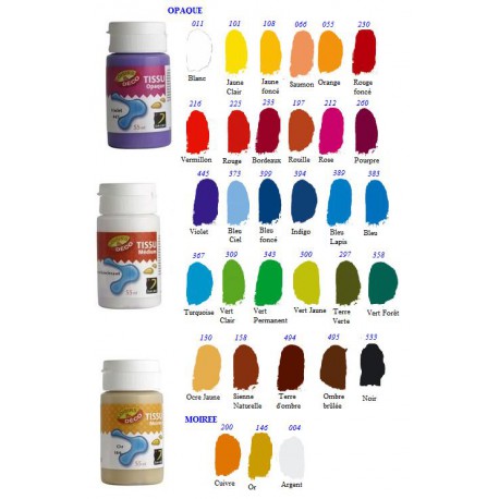 Cette peinture est appliquée directement sur le tissu en coton. Après séchage elle est fixée grâce à une presse à repasser.