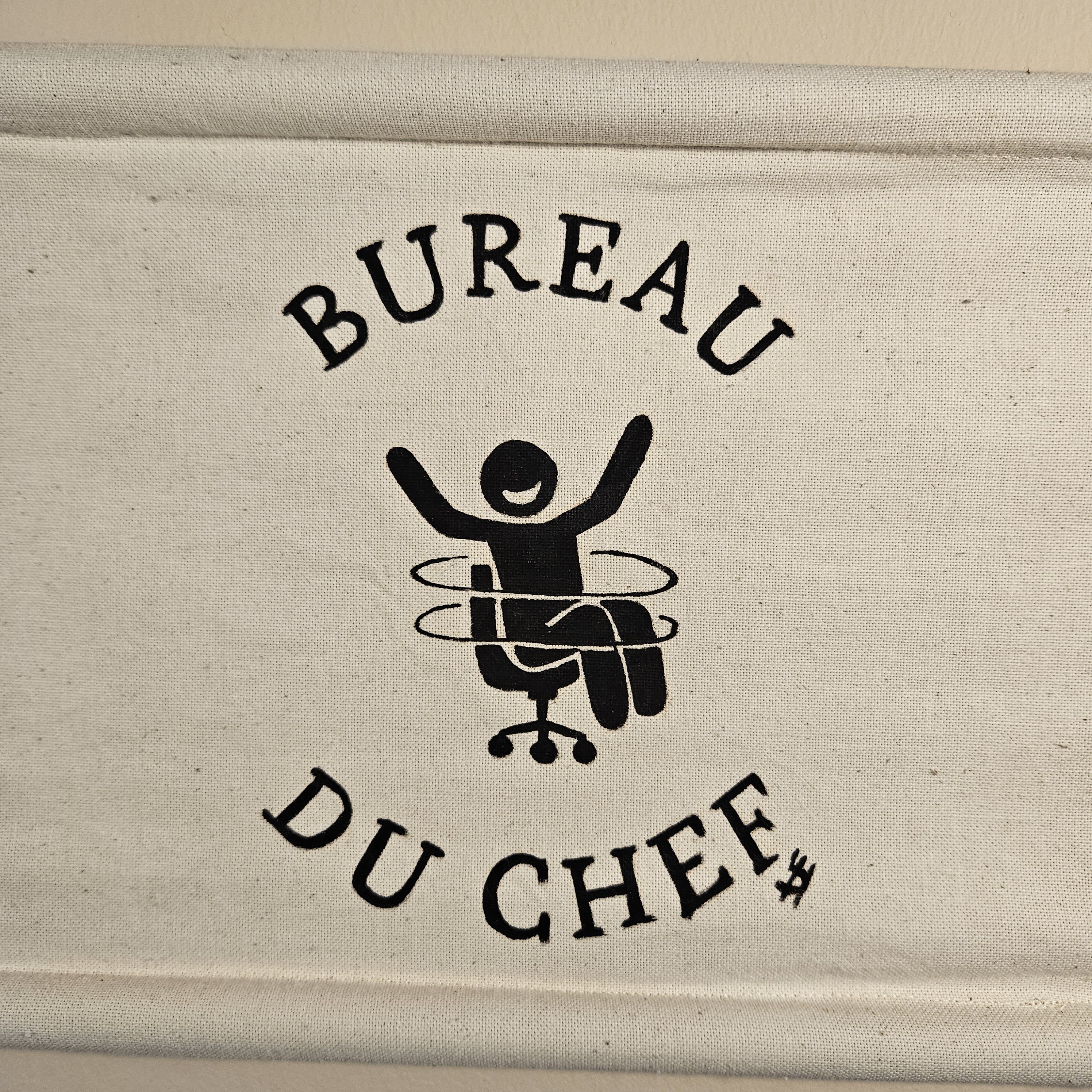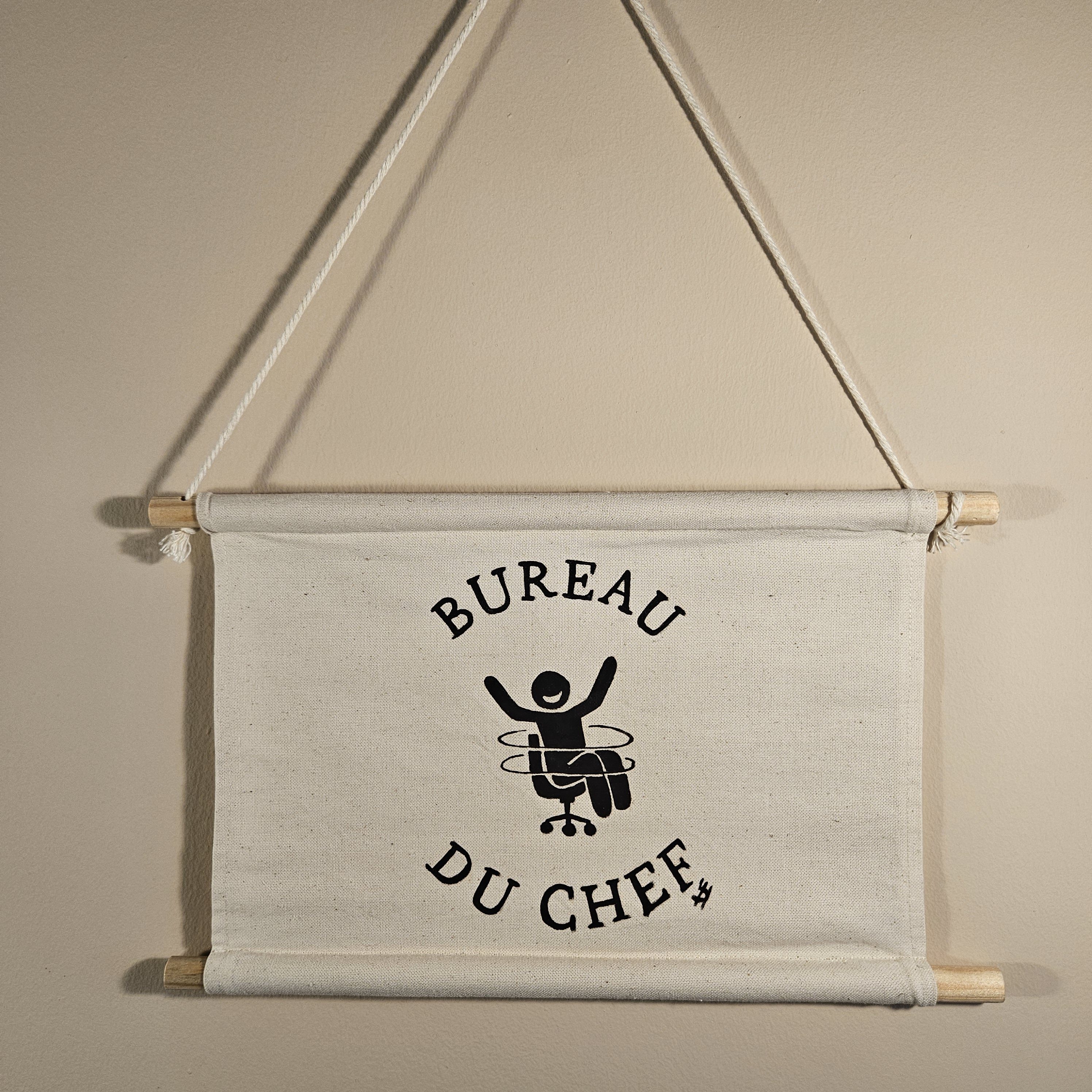 La définition du bureau : pièce où on passe de longues heures à gratter du papiers, passer des appels et suivre des réunions en visio. Un peu barbant n’est-ce-pas ? Et si on y ajoutait une touche de fun avec la banderole murale « Le bureau du chef » ?