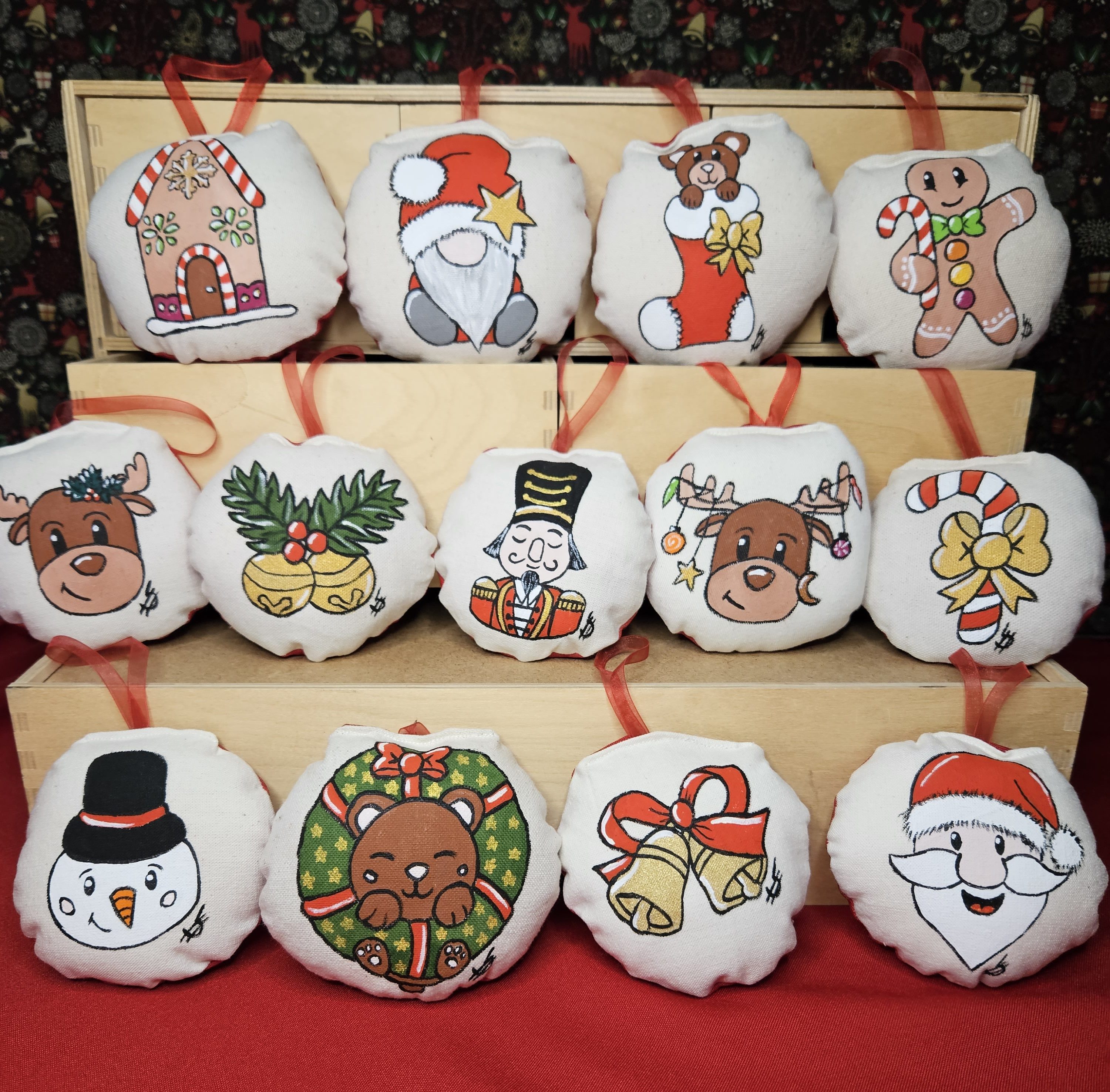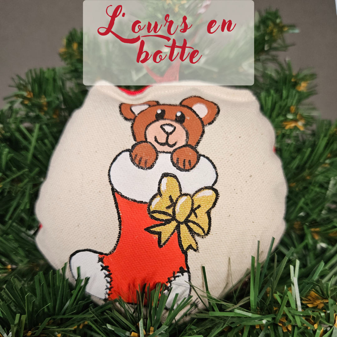 Leur originalité ? Des décorations uniques car peintes à la main, imaginées dans mon atelier puis cousue avec passion et patience pour une touche originale dans ton sapin. J’utilise de la peinture spéciale pour textile pour que tes décorations durent dans le temps et t’accompagnent pour de nombreux Noël.