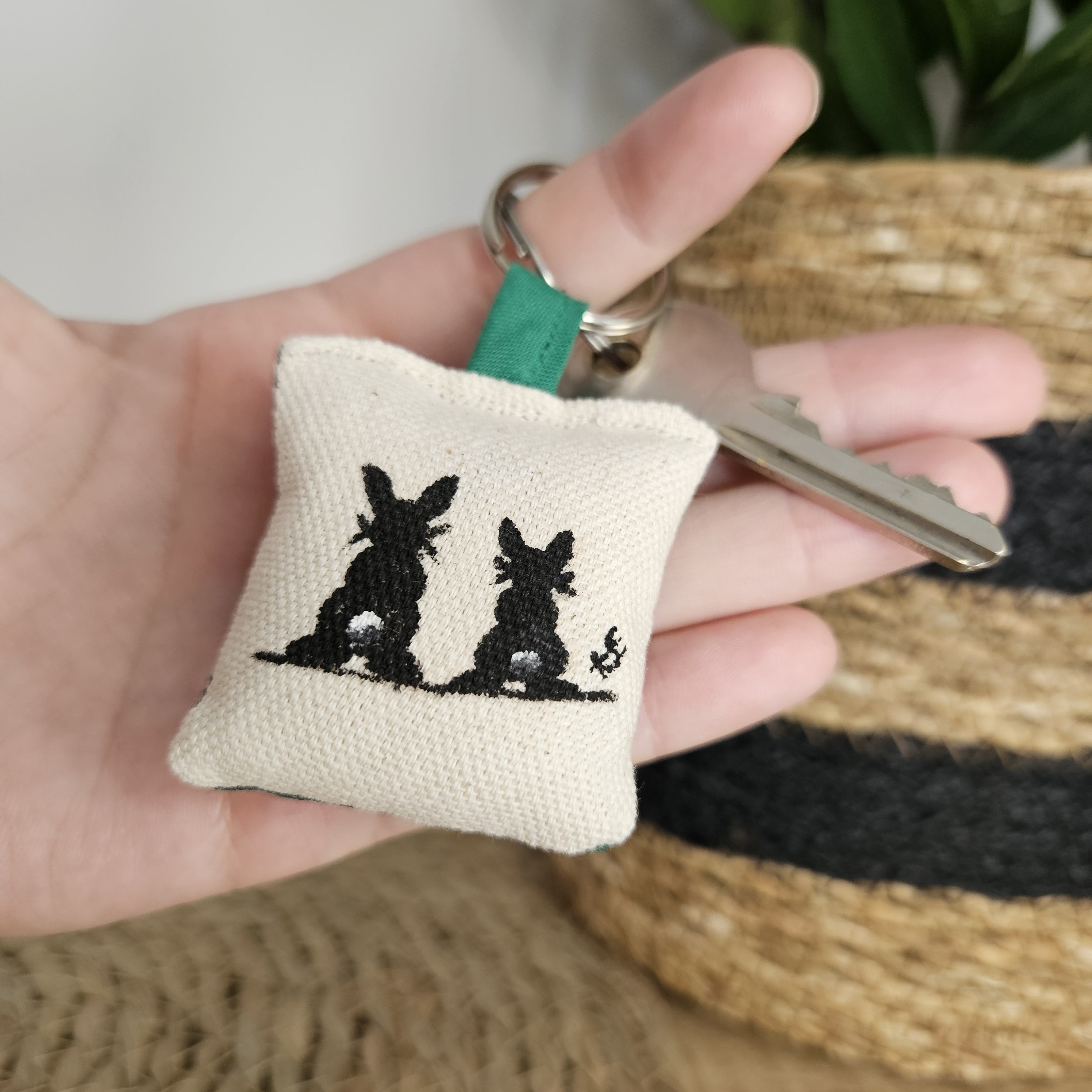 🌍 Polyvalent : Parfait pour tes clés, mais aussi pour ton sac, trousse ou même comme petit bijou décoratif. Voici un porte-clé pour les amoureux de lapins ! Il mesure 5cmx7cmx2cm (largeur x hauteur totale partie rembourrée et languette x profondeur)