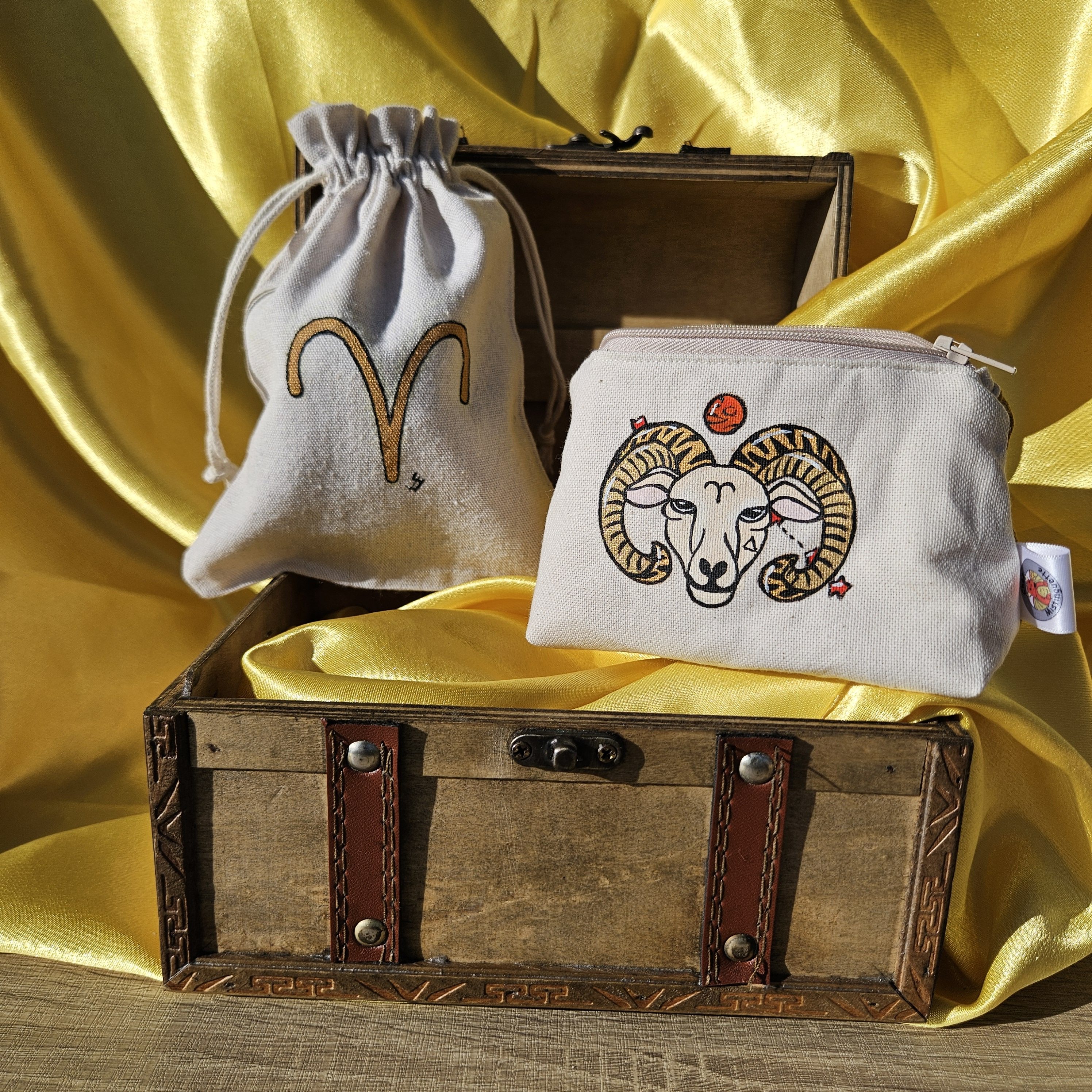 J’ai peint à la main chaque porte-monnaie de cette collection en y mettant toute mon âme et ma passion. Mon but ? Que chaque signe soit unique et retranscrive au mieux son énergie et ses traits de caractère. Pour le Bélier, tu retrouveras des clins d’œil à chacune de tes caractéristiques.