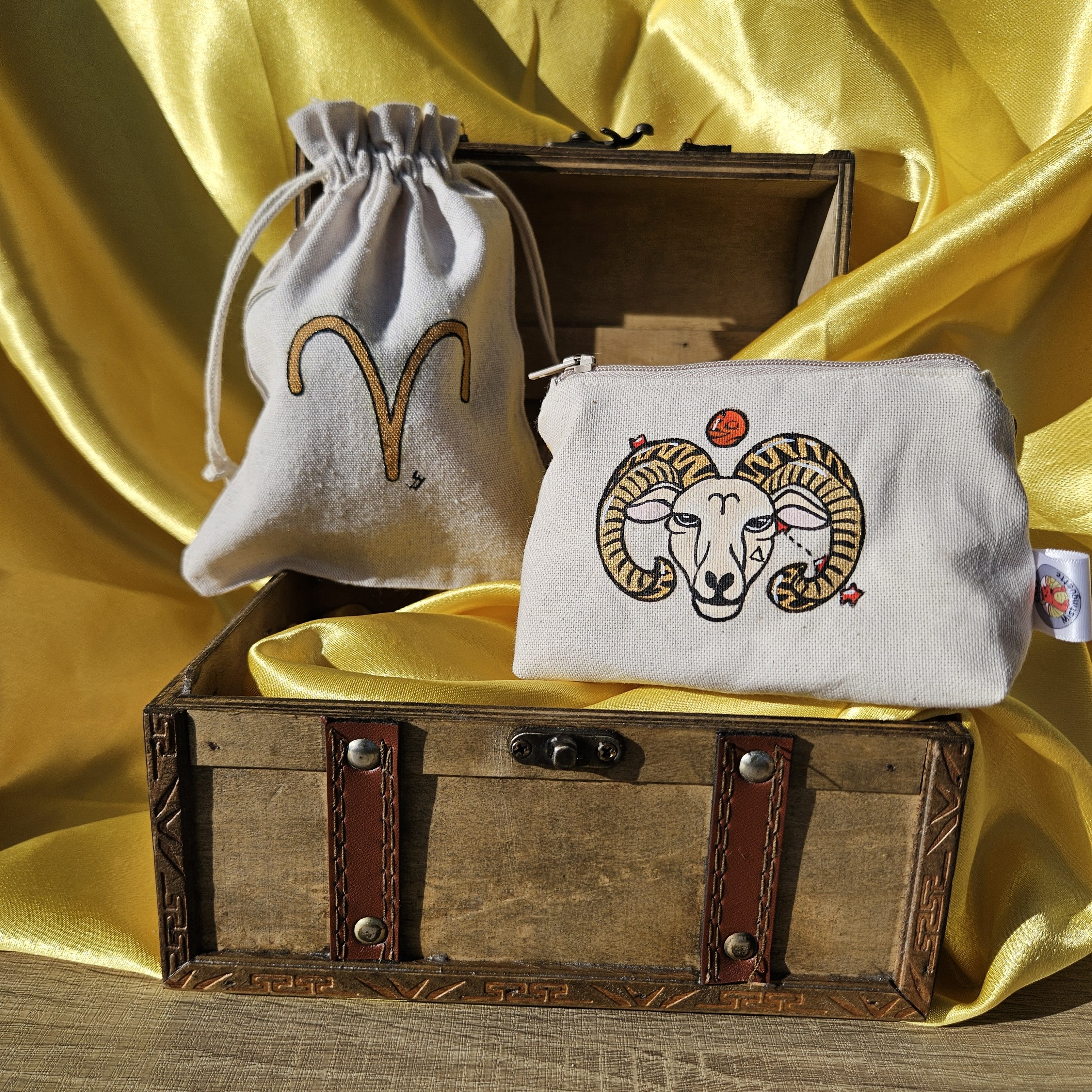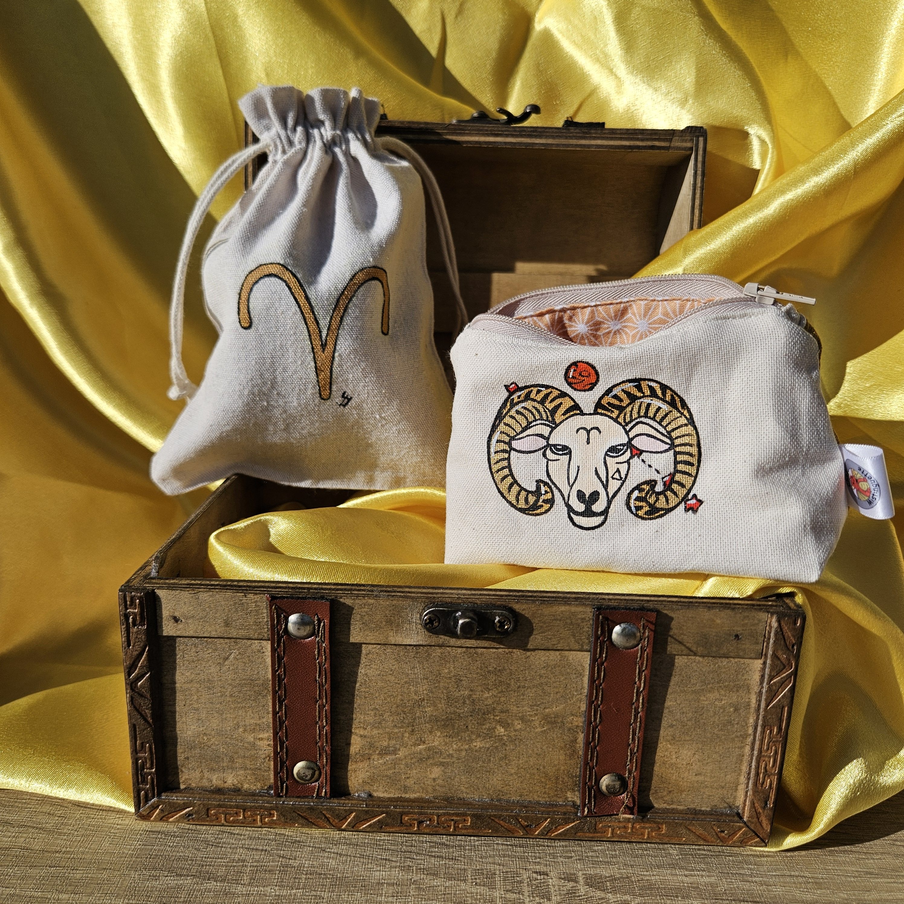 Hey toi, Bélier intrépide, viens découvrir le porte-monnaie Bélier spécialement pensé et créé pour toi ! Voici le premier signe astrologique de la collection « Poussière d’étoiles ». Peint à la main avec amour, il capture toute la fougue et la spontanéité de ton signe astrologique ! Petit plus, il te sera livré dans un joli pochon en coton réutilisable.