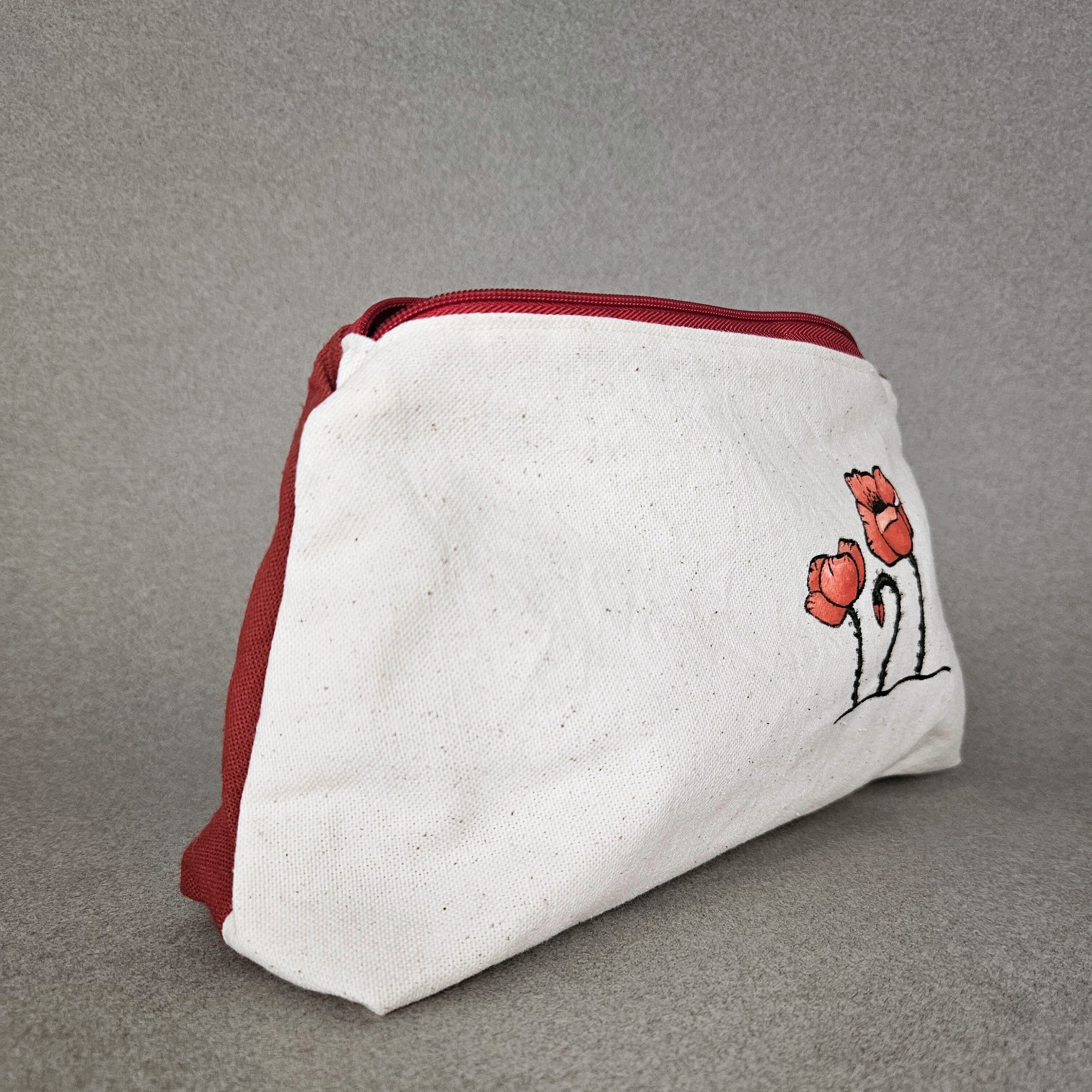 La trousse coquelicots est entièrement cousue dans mon atelier et le dessin est imaginé par mes soins. Lavable en machine à 30°C ou même à la main.