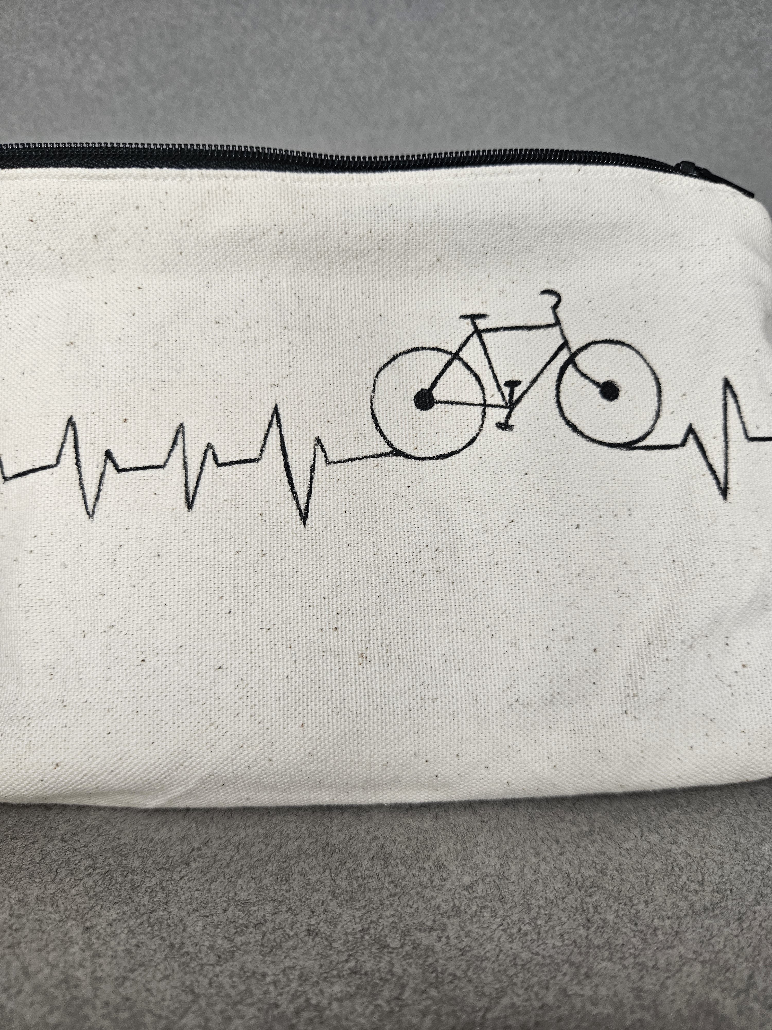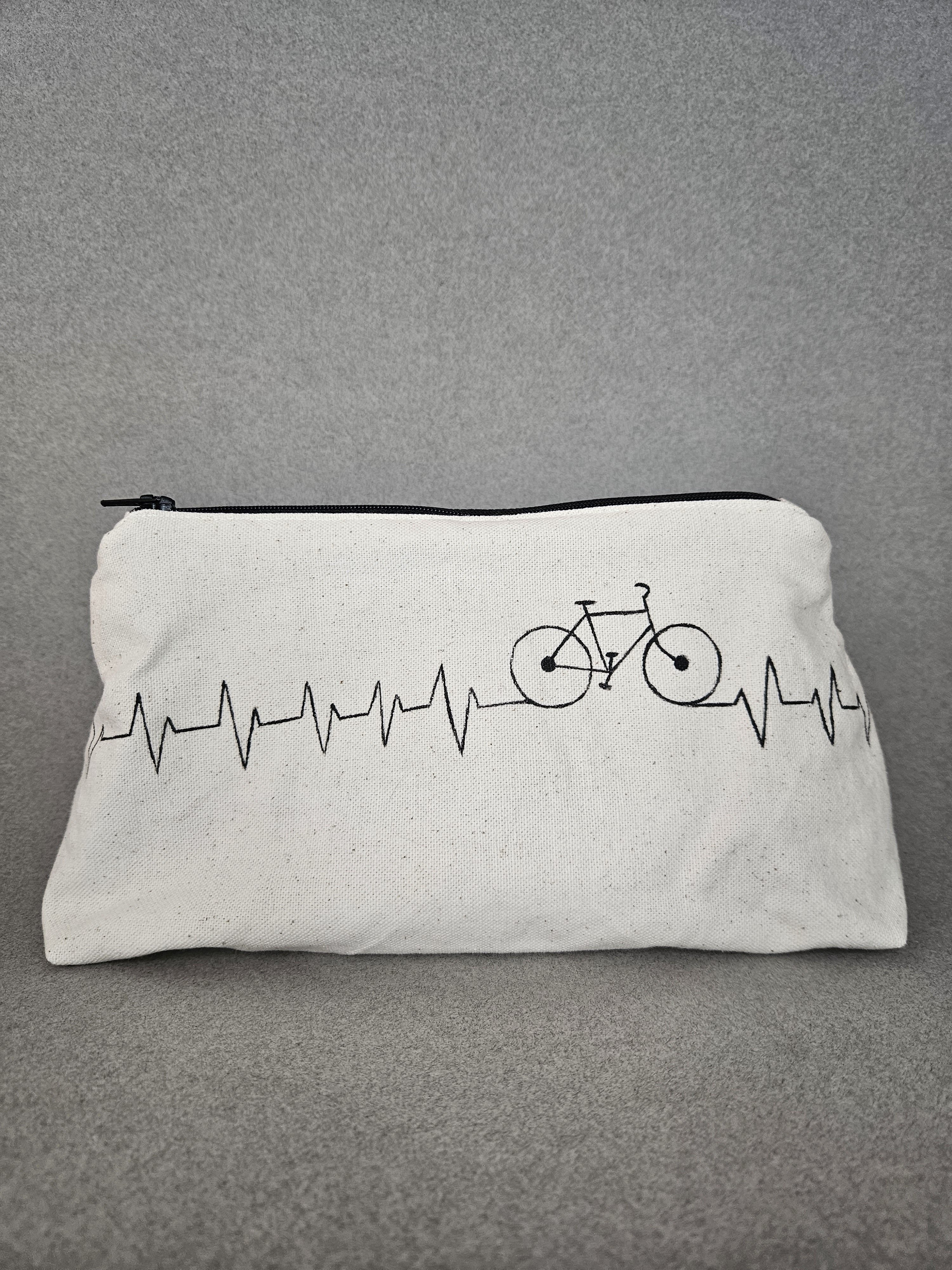 Si tu souhaites un format plus grand ou différent, n’hésite pas à me contacter directement par mail pour qu’on échange sur le sujet. La trousse vélo existe aussi au format pochette et porte monnaie.